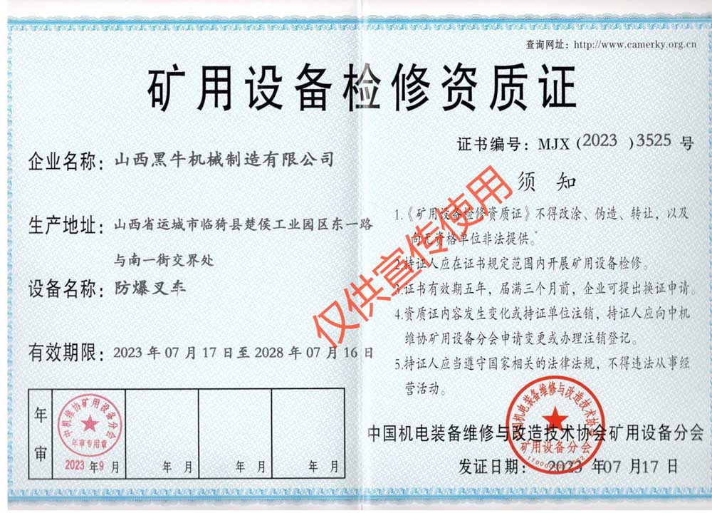 資質(zhì)證書 >檢修資質(zhì)>礦用設(shè)備檢修資質(zhì)證