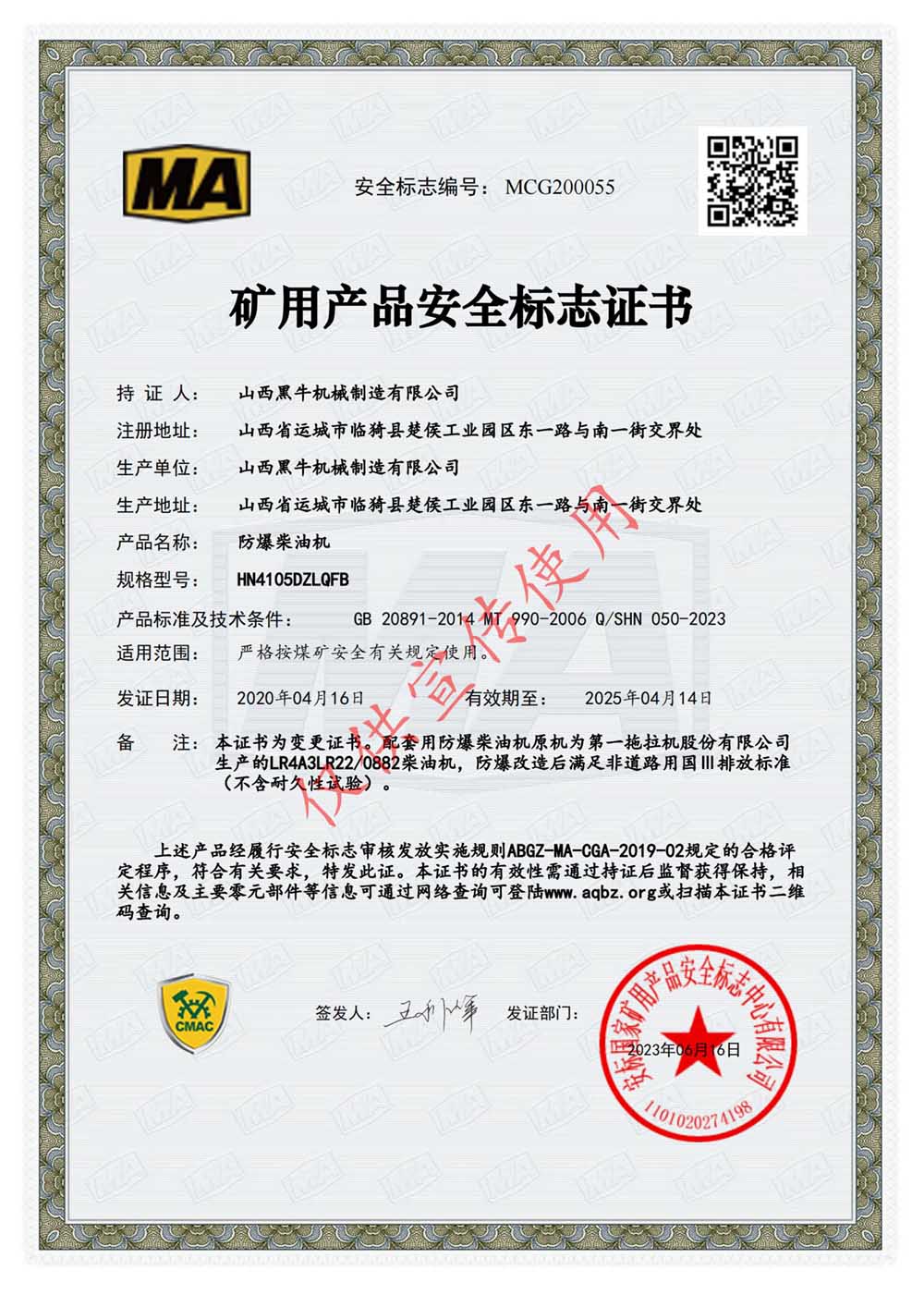 防爆柴油機(jī)__HN4105DZLQFBMCG200055