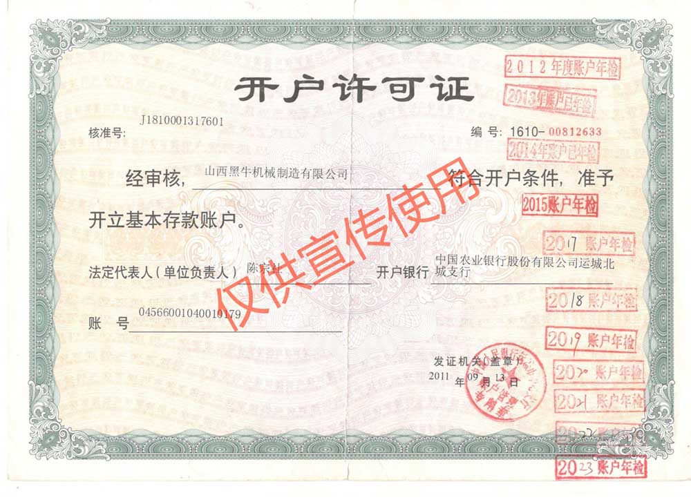 黑牛產品 >營業(yè)執(zhí)照、開戶許可證>開戶許可證
